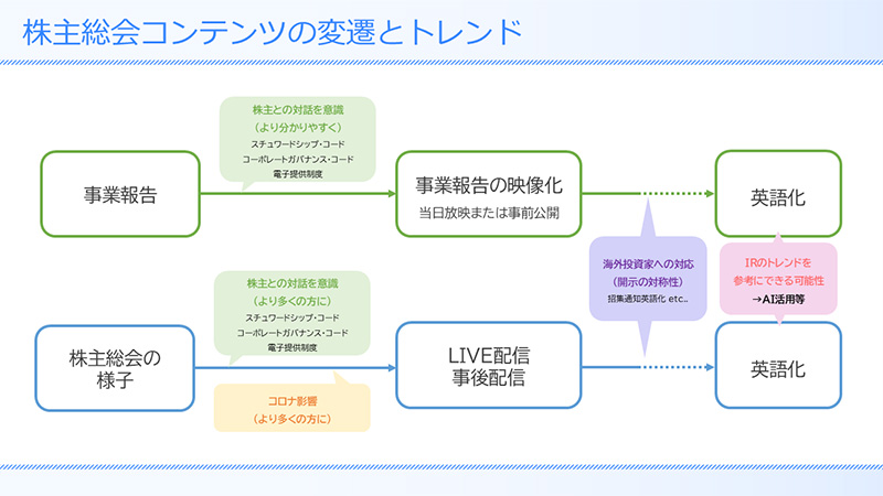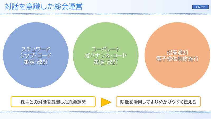 株主総会資料の電子提供制度に伴い、事業報告の映像化ニーズが増加。